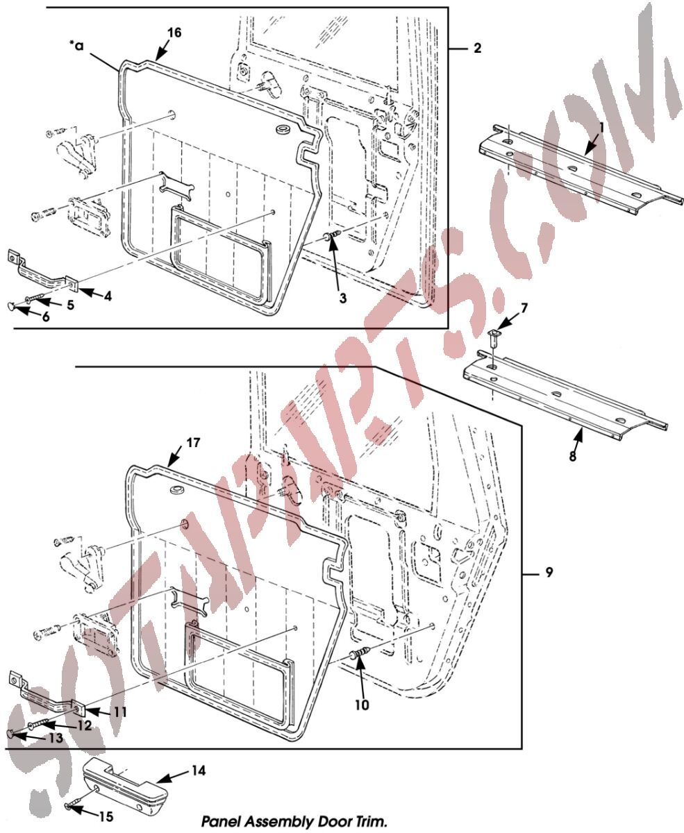 Türverkleidung (deluxe Ausführung) hinten rechts Farbe TAN für Türen mit Fensterkurbel.